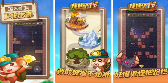 小猴子變化成為勇敢的礦工,拿著鐵鎬戴著鋼盔,來到地下探索,尋找傳說中的神秘寶石。游戲玩法較為簡單,通過點(diǎn)擊或者長按屏幕,就能控制小猴向不同的方向進(jìn)行移動(dòng)。在開放的過程當(dāng)中可能會(huì)遇到很多障礙,一定要快速消滅怪物,獲得豐厚的裝備,有機(jī)會(huì)拿到鉆石寶箱。