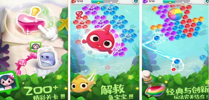 玩膩了開心消消樂不如看看這款游戲,同樣是經(jīng)典的消除玩法,發(fā)射泡泡讓相同顏色的泡泡一起消除得分,在海底世界盡情游戲,拯救那些可愛的海洋生物,美人魚在呼喚你,開啟冒險(xiǎn)吧。