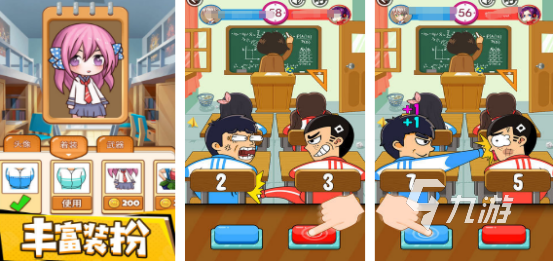 進入這樣的游戲之后,是不是也回憶起曾經(jīng)的同桌的呢?后可選擇不同角色完成任務參與競技,最終獲得更多金幣與經(jīng)驗,這樣有機會提升角色能力,購買更多裝備。有緊張刺激的游戲氛圍,兩位同桌共同暢玩游戲,擁有極強禁忌性的同時還要注意老師的視線,一旦被老師發(fā)現(xiàn),那么就會受到懲罰這樣的獨特設定再次模擬小時候上學的歡樂時光。