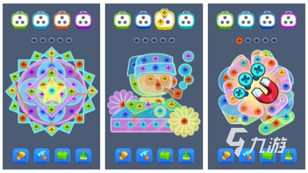此游戲通關(guān)的要素,在于快速且精準(zhǔn)的選擇對應(yīng)顏色螺絲擰掉,當(dāng)實(shí)現(xiàn)三個相同顏色落入對應(yīng)箱子中時,便可以完成一次消除。并且《螺絲全擰掉》的操作方式也十分簡單,大家只需要點(diǎn)擊螺絲便可以完成擰動。游戲內(nèi)設(shè)置有豐富的關(guān)卡挑戰(zhàn),同時根據(jù)螺絲顏色以及數(shù)量,也會有不同的難度考驗(yàn)。整體清新的馬卡龍配色,也別有一番夢幻風(fēng)情。