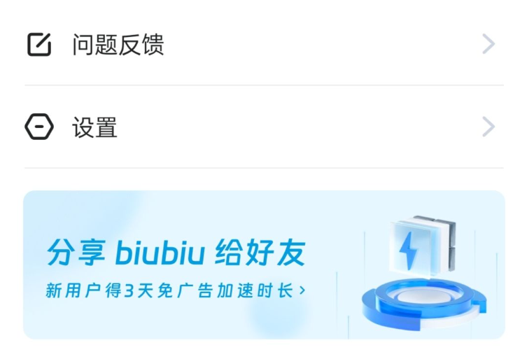 有些小伙伴開始疑惑怎么注冊(cè)就能用加速,這是因?yàn)閎iubiu提供給新用戶3天的免費(fèi)廣告加速時(shí)長(zhǎng),打開就能用,記得分享給好友一起領(lǐng)取。如果后續(xù)時(shí)長(zhǎng)不夠了,就需要看廣告來?yè)Q更多的使用時(shí)間,看3個(gè)就換到24小時(shí)了。
