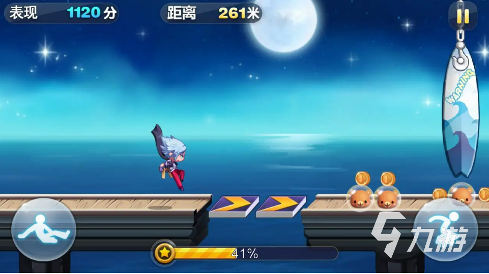 《天天酷跑》并不是豎屏的游戲,而是經(jīng)典橫屏的跑酷類手游,剛進入游戲的玩家只是一個小人,需要通過跳躍和滑鏟來躲避一些障礙,之后可以利用金幣和鉆石去購買或者抽取坐騎和寵物,如果有了坐騎玩家們下一局游戲就可以駕駛著坐騎進入游戲了,獲得的金幣也可以用來升級坐騎和寵物。