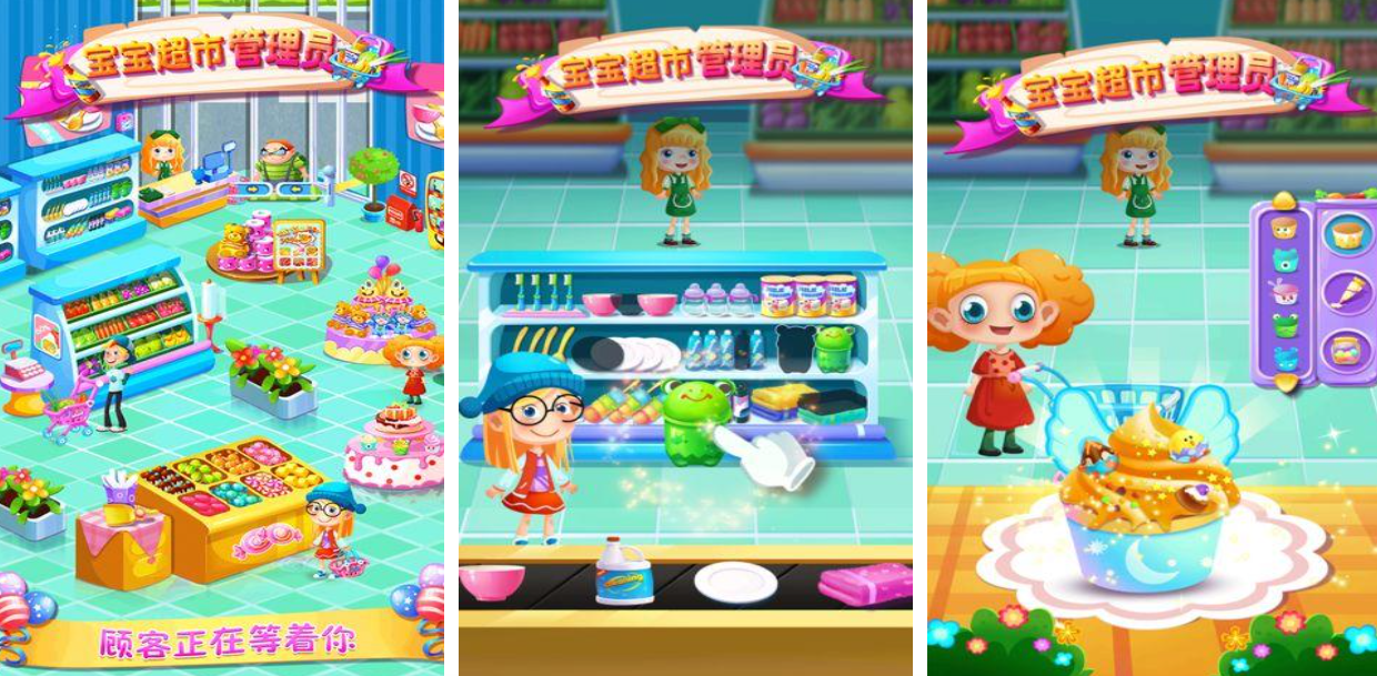 《寶寶超市管理員》同樣是一款為2~6歲兒童而設計的手游,游戲中小朋友們扮演的是一名超市的管理員,主要任務就是整理貨架,接待顧客和收銀。操作簡單,只需要根據(jù)顧客頭頂氣泡售賣食物即可。玩的時候還會有機會觸發(fā)趣味彩蛋,比如幫迷路的小動物顧客找到家,倘若成功的話還可以獲得感謝禮物。