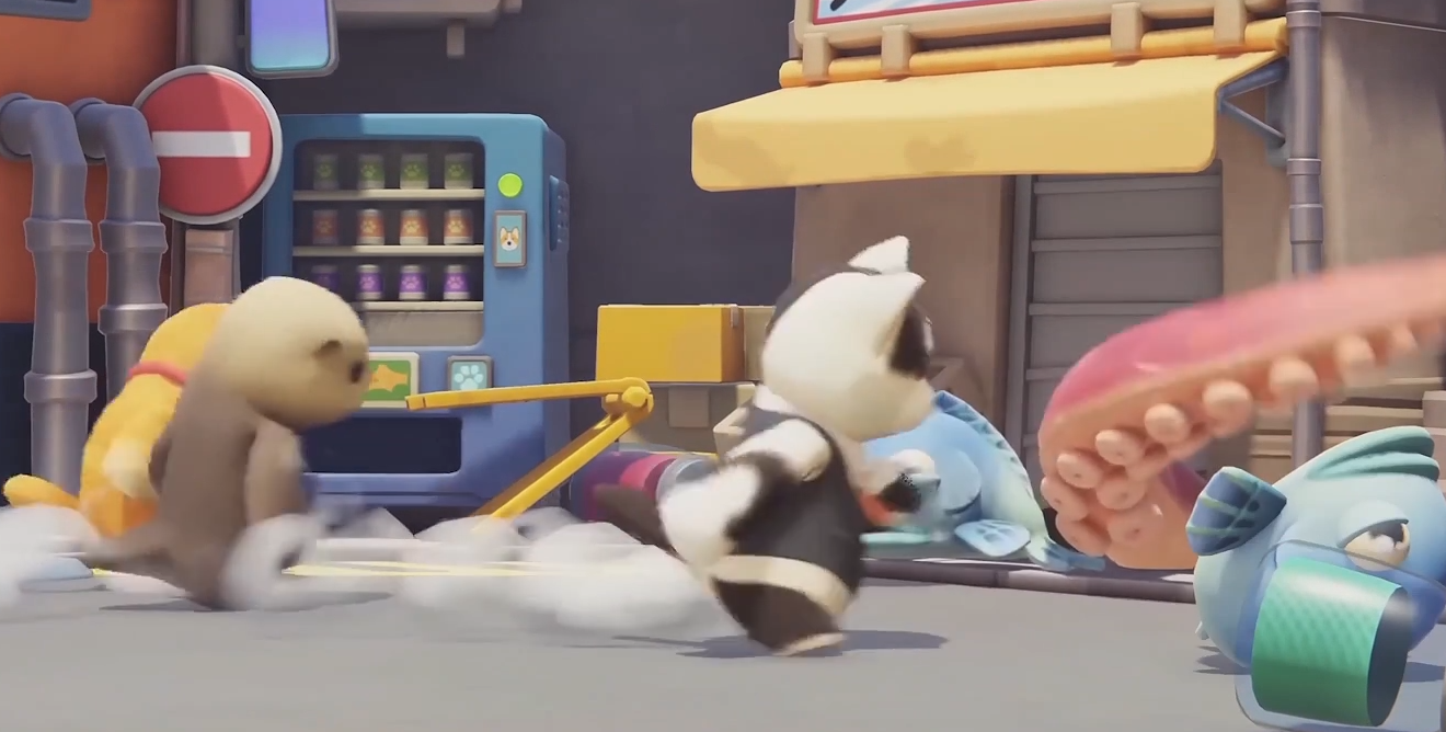 這個烤串可不是一般的烤串,在這個地圖中這些烤串是可以當(dāng)作武器來使用的,至于它的使用方法,其實就是普通近戰(zhàn)武器的使用邏輯,大家可以拿起烤串進行攻擊,被攻擊到的其他玩家會被擊飛。