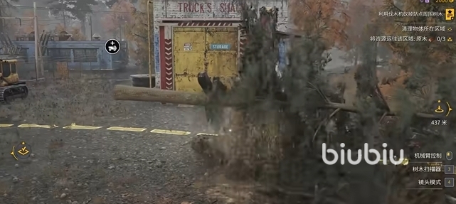 首先,小伙伴們需要控制裝有機(jī)械臂的車將樹木都給砍倒,這一點(diǎn)是比較簡單的,砍完的樹拖到比較空白的區(qū)域之后,還可以按一鍵給樹木進(jìn)行加工,將樹木周圍的樹枝都去掉,方便后續(xù)托運(yùn),這個(gè)操作步驟不能省略。