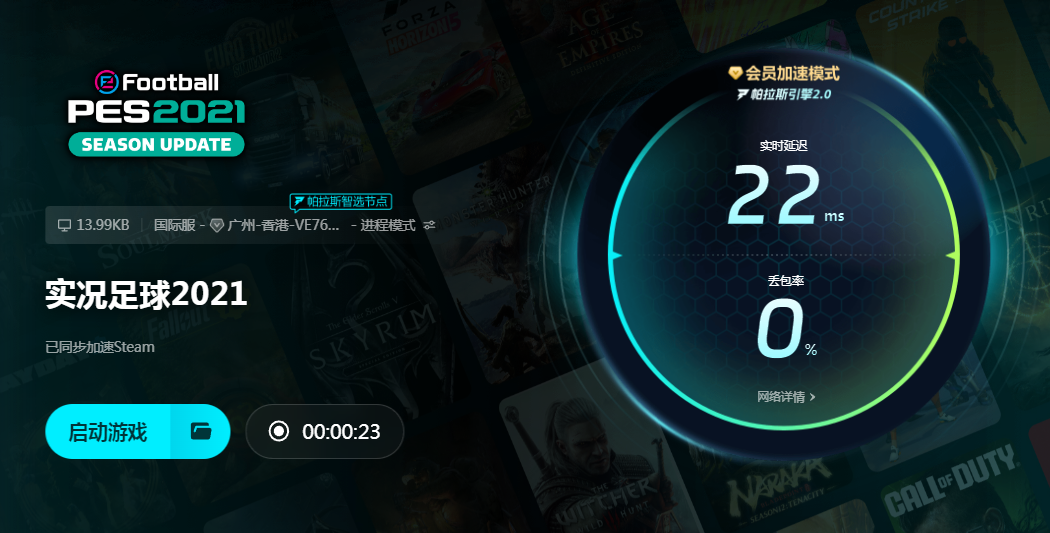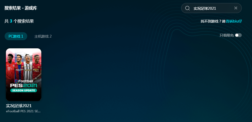biubiu加速器支持免費(fèi)試用,注冊(cè)新用戶就能獲得3小時(shí)免費(fèi)加速時(shí)長(zhǎng),接下來(lái)還能輸入兌換碼【biubiu不卡頓】來(lái)領(lǐng)取三天免費(fèi)加速。它能加速非常多游戲,在軟件里搜索游戲名就能看到實(shí)況足球2021的加速資源,玩游戲之前只要點(diǎn)擊一下藍(lán)色按鍵就會(huì)啟動(dòng)加速了。