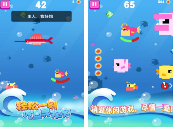 采用像素的風(fēng)格,依舊以大魚吃小魚這種玩法為主,只不過在畫面上給大家?guī)砀虞p松,以及有趣的玩法。你可在玩的時候,不斷的控制小魚游改變游行的方向以后,吃比自己體型小的魚,一旦食物不足的話,魚會餓死的,所以為了避免發(fā)生這一種情況,一定要在玩的時候及時的吃,比自己體型小的,然后自己就能夠完成升級。