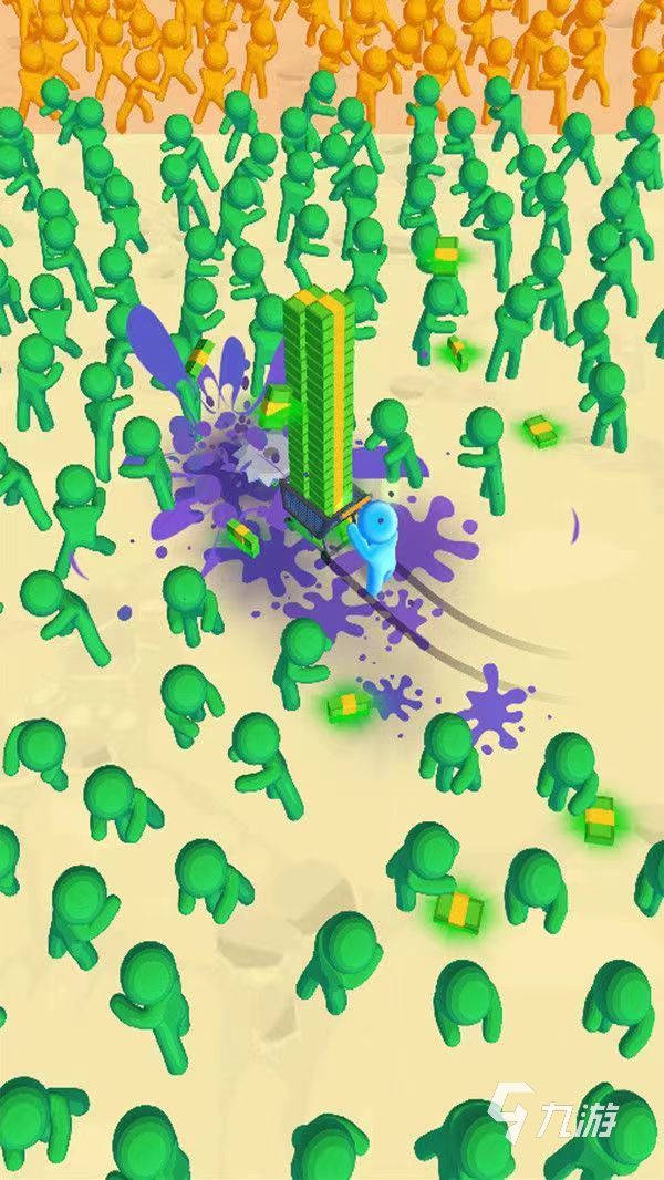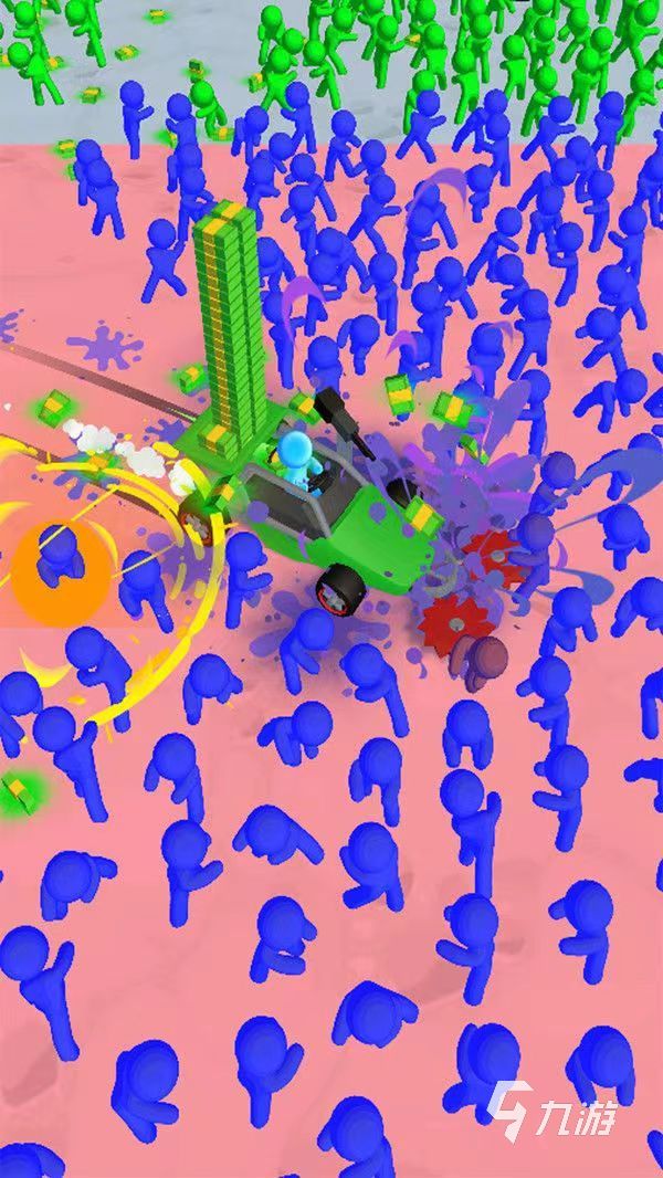 這是一款擁有著收割玩法的休閑小游戲,使用卡通風(fēng)格制造而成的畫面以及人物,看起來(lái)比較的精美細(xì)膩,而且色彩搭配的也很好,角色形象給人一種q萌可愛的感覺,玩法也沒有那么的復(fù)雜,剛開始的時(shí)候玩家只需要將小推車推到有很多僵尸的地方,先將這一堆僵尸收割一下,等到小車滿了以后,就趕快把他拉走,這樣就可以獲得大量的金幣。