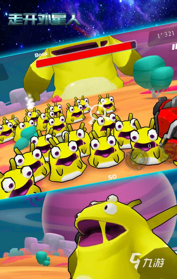 《走開外星人》是一款科幻風格的塔防游戲,玩家將會在游戲中化身成為地球的最后一道防線。開局你便能獲得激光,火炮和子彈三種炮塔,擊敗敵人將會獲取額外的經(jīng)費,經(jīng)費可以用來購買和升級炮塔。同時擊敗游戲當中的外星人,他們也有概率掉落激光或者電磁核彈塔,三座相同的防御塔能夠合成進階為高級激光塔。隨著游戲的推進外星人也擁有了不斷進化和吞噬的機制,他們會變得越來越強,玩家只有使用更加強大的科技武器才能夠擊敗他們。