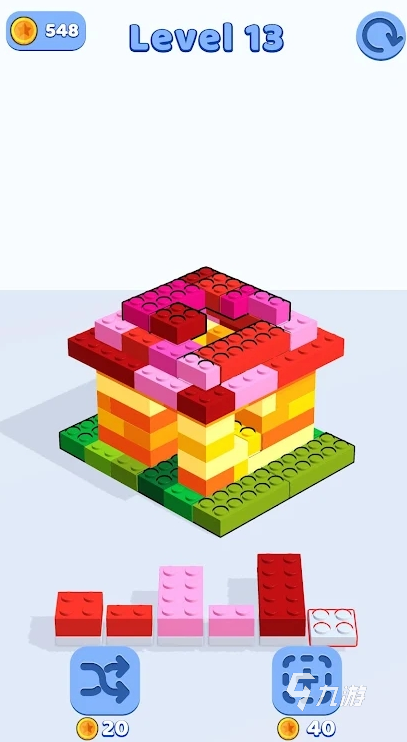 在這個(gè)游戲里,每一個(gè)關(guān)卡都是由積木堆出來的,大家可能會(huì)看到一些看起來很真實(shí)的動(dòng)物,還有一些特別的人物,他們都是用不同積木搭出來的,風(fēng)格都不一樣。玩家就按照積木上顯示的箭頭去點(diǎn)它,這樣就可以把整個(gè)積木堆的形狀給變一下,最后就能把積木給消除了。在游戲的最下面有三個(gè)小板塊,可以給玩家在玩積木的時(shí)候提供點(diǎn)幫助,如果走錯(cuò)了一步,還可以回到上一步。