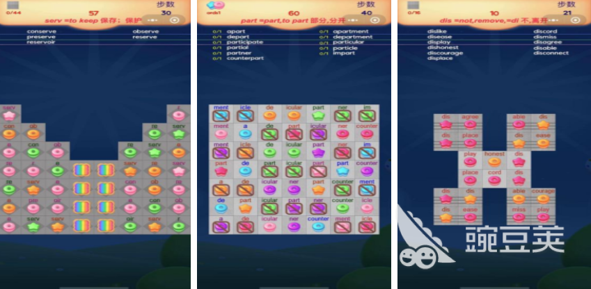 甜蜜英語消消樂是一個非常趣味的消除游戲,和傳統(tǒng)的點擊消除不同,里面會有大量的甜點,在這些甜點的上方會有英文單詞或者字母,每一次消除過程中,不再是點擊相同的甜點,而是需要把可以組成單詞的字母或者是詞匯連接起來,每組成一個單詞就能獲得相應(yīng)的分數(shù),玩家需要在對應(yīng)的步數(shù)限制內(nèi),盡可能多復(fù)原更多的單詞。
