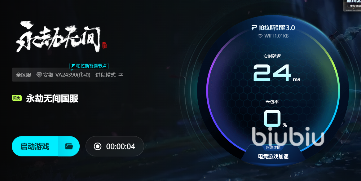 《永劫無(wú)間》的魅力在于武俠對(duì)決的行云流水與團(tuán)隊(duì)協(xié)作的默契無(wú)間。玩家可以用鉤鎖飛檐走壁,靠振刀化解攻勢(shì),在劍氣縱橫中展現(xiàn)操作,在三人小隊(duì)中分工配合。有人正面牽制,有人繞后偷襲,有人遠(yuǎn)程支援。每一次閃避、每一次奧義釋放都講究時(shí)機(jī),0.1秒的延遲都可能讓勝負(fù)逆轉(zhuǎn)。但高延遲會(huì)讓這些精妙操作變成徒勞,蓄力攻擊變成空揮,鉤鎖瞄準(zhǔn)變成盲目飛行,再好的戰(zhàn)術(shù)也難以施展。biubiu能從網(wǎng)絡(luò)層面提供支持,讓這些武俠對(duì)決更流暢。