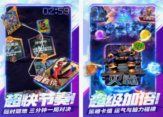 屬于一款能看到漫威當(dāng)中大家耳熟能詳?shù)慕巧以诤M馐袌霎?dāng)中,也憑借著游戲所具備的高品質(zhì),獲得過很多的獎項。有著超高的下載量,也是由漫威正版授權(quán)的,你可在這里面,感受漫威英雄變體數(shù)量最多的特色。通過自由的選擇以后,加入到與很多厲害的對手較量中,享受超快的節(jié)奏,三分鐘大家就能開一局。