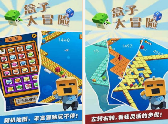 里面的角色就是以各種各樣的盒子為主,除了他們都可以在冒險(xiǎn)的過(guò)程當(dāng)中,進(jìn)入不同的場(chǎng)景樣子,也是非常獨(dú)特又古靈精怪的,還會(huì)做出很多的表情。在開(kāi)啟了一段與盒子之間的競(jìng)技冒險(xiǎn)之旅的時(shí)候,還融入了跑酷當(dāng)中,大家耳熟能詳?shù)?。點(diǎn)擊屏幕的時(shí)候,根據(jù)適當(dāng)?shù)臅r(shí)機(jī)改變跳躍的方向,支持在不同的場(chǎng)景當(dāng)中,自由的搭配伙伴,利用地形的優(yōu)勢(shì),順利完成競(jìng)技。