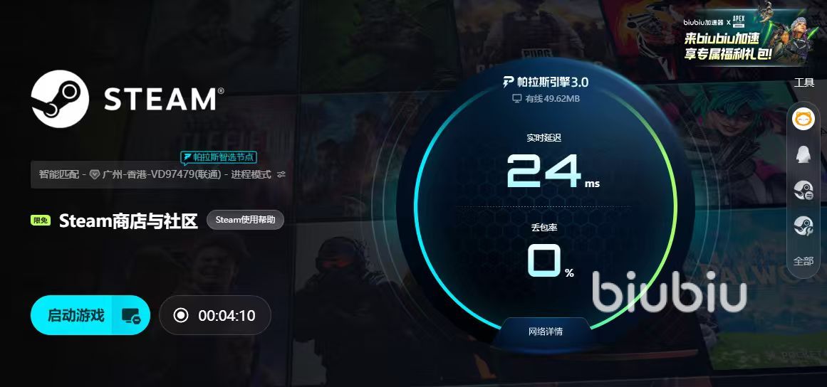 當(dāng)然網(wǎng)絡(luò)不通暢有可能導(dǎo)致上面的諸多問題,掉線掉幀影響游戲體驗,越高的幀數(shù)越能增加各位的游戲體驗,所以最好使用biubiu加速器,由左梓軒這為著名選手擔(dān)任產(chǎn)品體驗官的biubiu加速器,一直是非常好用,并且在重磅推出的帕拉斯引擎3.0的幫助下,不用再擔(dān)心自己成為掉線玩家,為游戲的失敗承擔(dān)責(zé)任了。