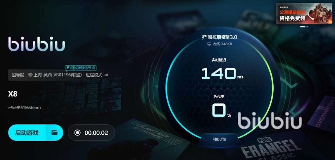 初次使用的新用戶,注冊(cè)登錄之后就可以領(lǐng)取到24h加速時(shí)長(zhǎng),方便玩家直觀感受加速效果。此外,所有平臺(tái)所有的用戶都可以通過【biubiu不卡頓】,兌換到三天的繼續(xù)加速時(shí)間。兩項(xiàng)福利疊加,新用戶最多可享96小時(shí)免費(fèi)體驗(yàn),足夠完成多場(chǎng)完整對(duì)局測(cè)試,充分驗(yàn)證其穩(wěn)定性。