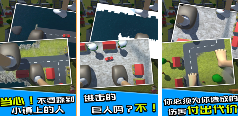 玩家一進入這款游戲就會以巨人的身份開始冒險,需要根據(jù)任務指引來到不同地點執(zhí)行冒險,但在移動中不能摧毀房屋也不可以踩到NPC,以上帝視角看著自己腳面的視覺效果也很特殊,自由扮演巨人進行移動的機制簡直是如履薄冰,不俗的建模技術也將微觀的人類世界營造的栩栩如生喲。