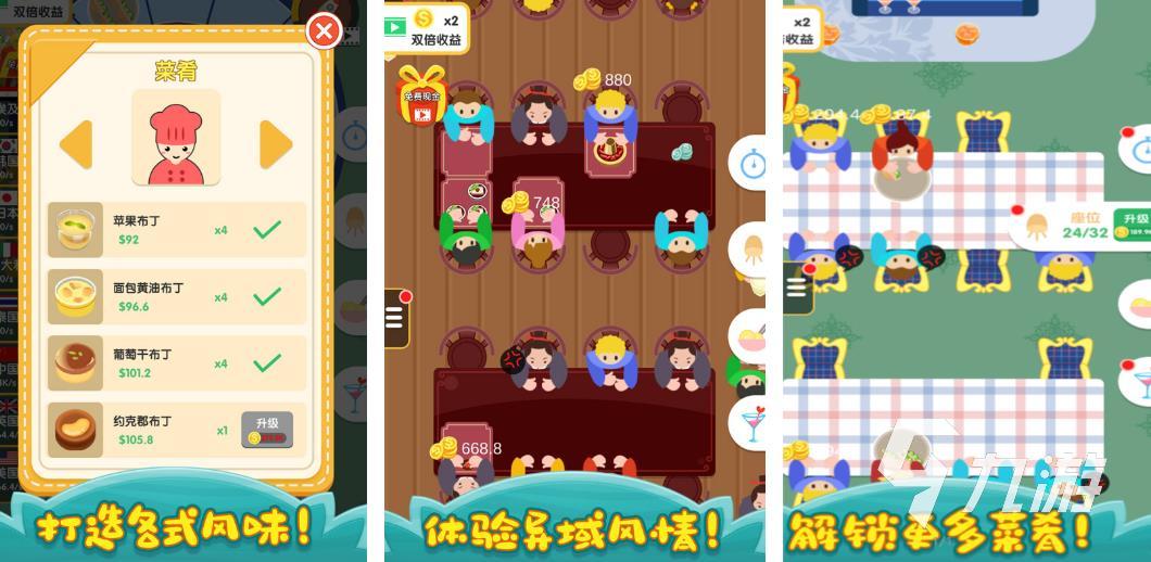 在這里,你將擔(dān)當(dāng)一位大廚,為各種食客帶來絕妙的美味。無論是親自下廚還是選擇放置掛機模式,都能讓你的餐廳自動運營并創(chuàng)造不間斷的收益。菜單上有千變?nèi)f化的菜品等待你的創(chuàng)作,從經(jīng)典的中式到引人入勝的西式,從家常菜到精致料理,你可以盡情嘗試,烹飪出屬于自己的獨特風(fēng)味。此外,你還能裝修升級餐廳,打造優(yōu)雅高檔的用餐環(huán)境,吸引更多客人慕名而來。