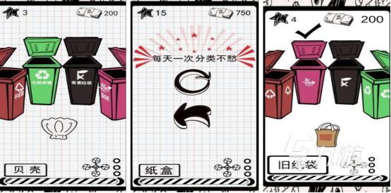 卡通的風(fēng)格,適合所有年齡段的人群小孩子,在體驗(yàn)游戲的同時還能夠知道很多的知識內(nèi)容,這里涵蓋了100多個挑戰(zhàn)的關(guān)卡,覆蓋了多樣化的知識競賽問答。在開局后您可以看到4個不同的垃圾箱,在每個垃圾箱上都有具體的標(biāo)注,玩家要通過滑動屏幕的方式,將這些垃圾順利地拖放在垃圾箱當(dāng)中,就能順利完成闖關(guān)。