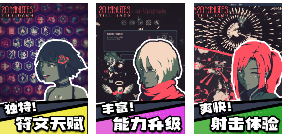 本作是款擁有超快節(jié)奏的端游移植割草肉鴿游戲,黎明前20分鐘這款佳作每次戰(zhàn)斗都是20分鐘超級耐玩,獨(dú)創(chuàng)的天賦技能設(shè)定跟射擊體驗(yàn)爽到飛起,多樣化的角色技能還可以幫助大家快速肉鴿割草,靈敏的操作、滿屏彈幕的效果都是肉鴿游戲必備,極為超前的割草闖關(guān)理念也頗受朋友們的喜歡。
