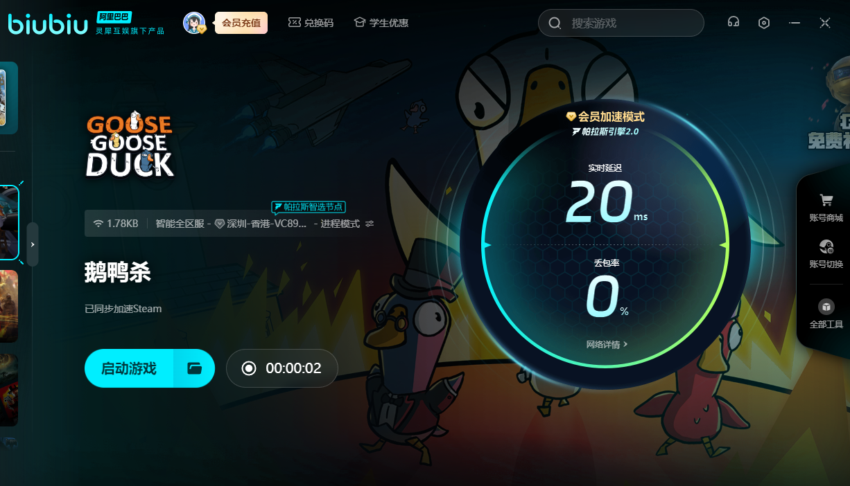鵝鴨殺作為一款優(yōu)秀的海外佳作,如今暫時還沒上線國服。若是我們打算加入鵝鴨大戰(zhàn)的話,就好借助biubiu。通過加速后,就能被別人送入太空飛船中,繼續(xù)展開對戰(zhàn)!新用戶的話,可獲得三個小時的免費加速;然后新老用戶輸入【biubiu不卡頓】,就能額外領(lǐng)取三天免費加速。要是在推理過程中太卡的話,那就會被對手率先解決,或者無法完成任務(wù)。用上加速器后,才能加快自己的節(jié)奏,完成屬于自己的任務(wù)。