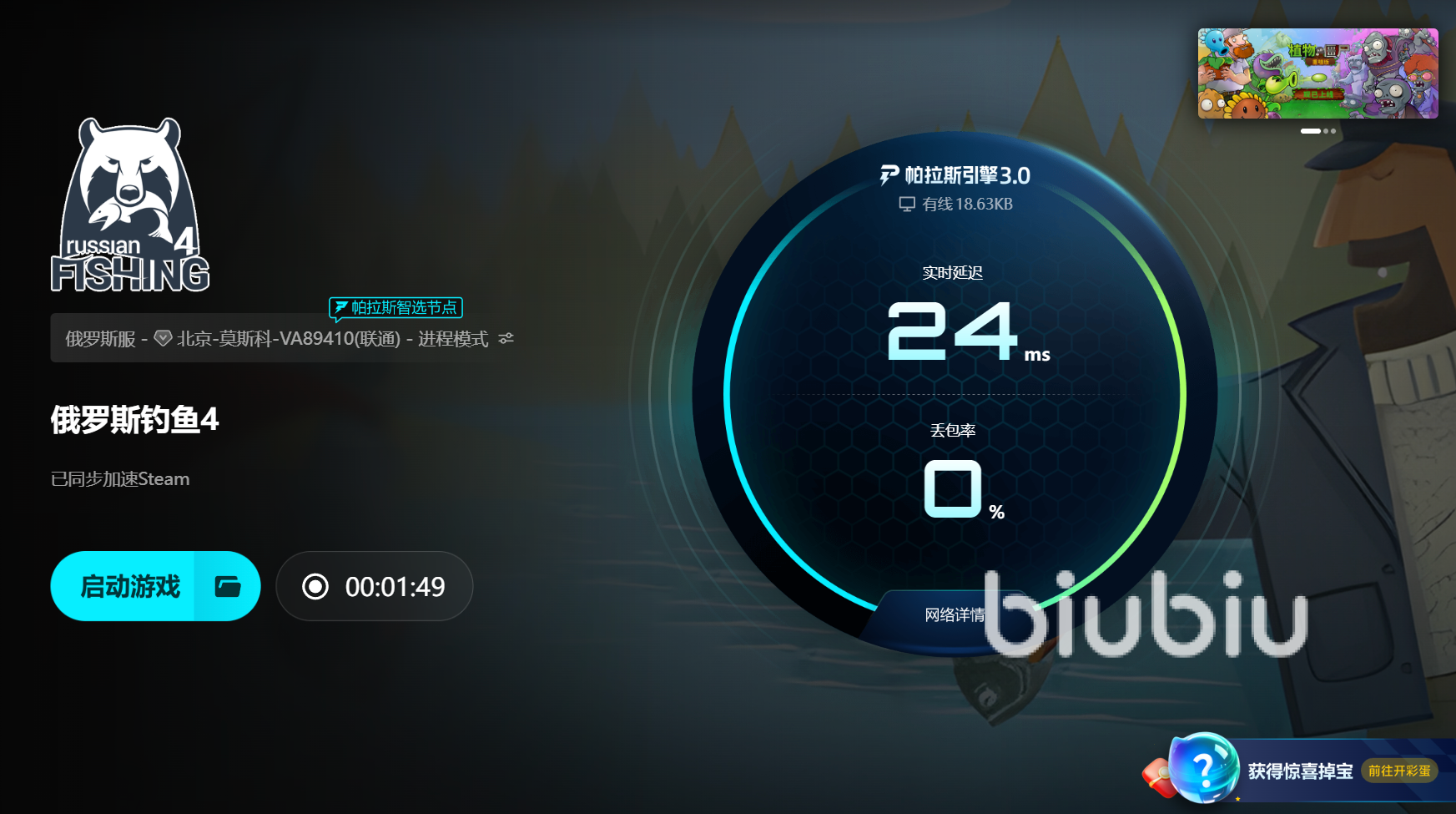 俄羅斯釣魚(yú)4的魅力,不在于釣到多少魚(yú),而在于你能真實(shí)置身自然、進(jìn)入一個(gè)會(huì)呼吸的世界。閃退和黑屏打斷的是這種沉浸感,而穩(wěn)定的網(wǎng)絡(luò)連接才能讓你真正走進(jìn)這片水域。使用biubiu加速器不是為了讓你釣得更快,而是為了確保你能順利開(kāi)啟這段旅途,讓每一次拋竿都發(fā)生在真實(shí)而流暢的世界里。