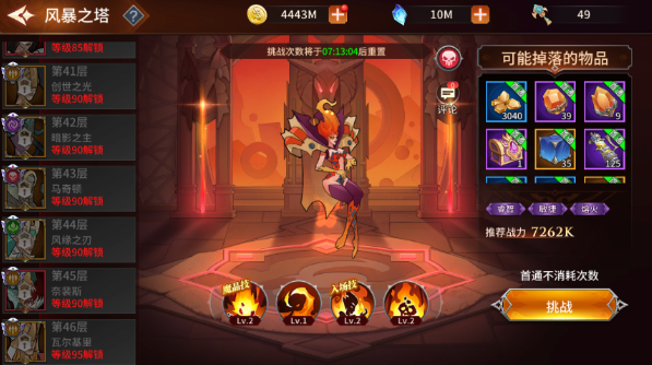 風(fēng)暴之塔是玩家快速提升戰(zhàn)力和獲取資源的重要途徑,玩家需要逐層挑戰(zhàn)塔內(nèi)的魔靈NPC,獲得豐厚獎勵以提升戰(zhàn)力。每一層的NPC都具有不同的特性,玩家需要根據(jù)特性組合合理選擇和搭配魔靈,制定戰(zhàn)術(shù)策略。通過擊敗NPC,可以獲取寶石精煉道具、魔靈升級材料、貨幣等珍貴資源。玩家角色等級越高,可以解鎖更多層級,挑戰(zhàn)難度也逐漸增加。