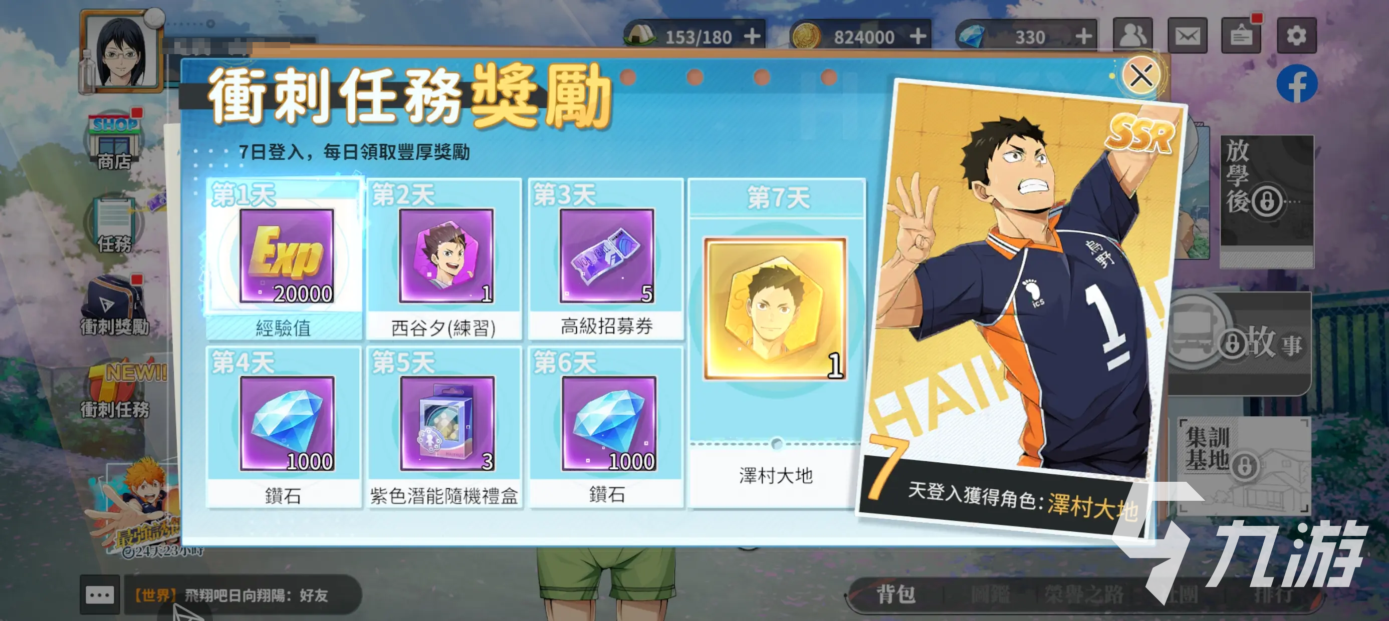 游戲中還有很多的活動福利可以領取,像小伙伴們剛進入游戲的時候,只要連續(xù)簽到7天,第7天就可以獲得澤村大地,這是一個SSR級別的角色,實力非常強悍,此外在第二天的時候大家還能得到西古夕,這是一個SR球員,前期也很好用。