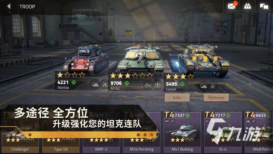 游戲以二戰(zhàn)為背景,展現(xiàn)了各國坦克之間的激烈對抗。你可以選擇美國、蘇聯(lián)、德國等多個國家的各種類型的坦克,收集并駕駛它們參與戰(zhàn)斗。你還可以通過擊敗敵人的坦克來獲得經(jīng)驗值和資源,進(jìn)而提升你的坦克性能。游戲不僅有精彩的實(shí)時戰(zhàn)爭場景,還有多人聯(lián)機(jī)模式等多種玩法。