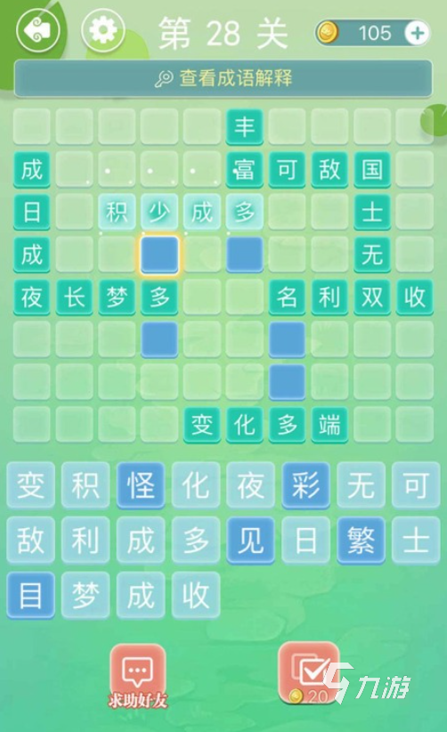 這是一款傳統(tǒng)的中國文字游戲,玩家需要用一個成語的最后一個字作為下一個成語的第一個字,不斷接龍。這個游戲的難度逐步增加,對新手玩家很友好,玩過幾關(guān)就能明白游戲規(guī)則。成語排列不同,形狀不同,需要根據(jù)成語的排列猜測該填什么成語,而且游戲有很多難度可以選擇,不同難度成語的提示和排布也不同,如果想讓孩子開心學(xué)習(xí)成語,可以試試這個游戲。