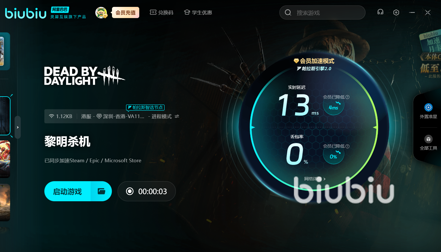 在緊張刺激的競技,掉幀可能導(dǎo)致幸存者關(guān)鍵時刻操作失誤,錯失逃生良機(jī),也會讓殺手的攻擊節(jié)奏被打亂,無法順利完成捕捉任務(wù)。無論是逃生還是追獵,想穩(wěn)定發(fā)揮實力就用biubiu優(yōu)化,它能有效避免掉線等網(wǎng)絡(luò)問題,即使在網(wǎng)絡(luò)高峰期也能又穩(wěn)又快。