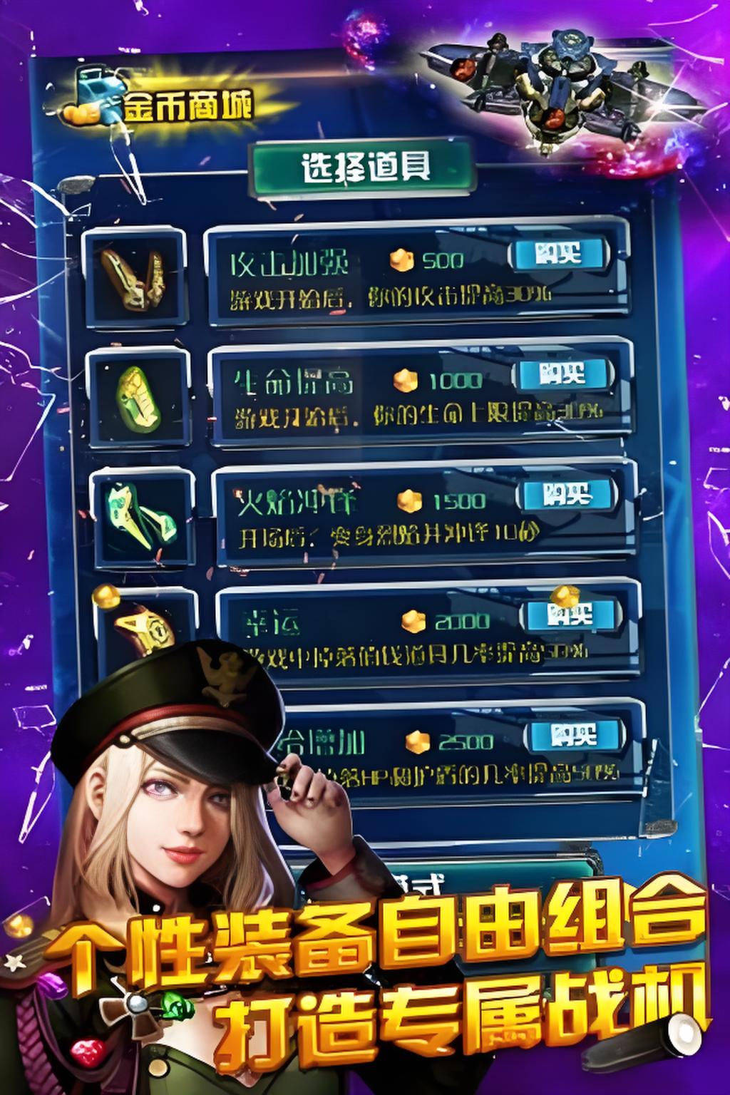 游戲不光有劇情的玩法和無盡模式,還新添了六種有創(chuàng)意的玩法。戰(zhàn)機有全面的成長方式,我們可以進行升級進階,還有六個裝備位置,還能鍛造神器等等,玩家能通過打仗和完成任務來一直提高戰(zhàn)機的性能。戰(zhàn)機的界面很有金屬的感覺,再配上幾十種漂亮的彈幕特效和爆炸效果。游戲玩的開心的同時也能領到很多獎勵。