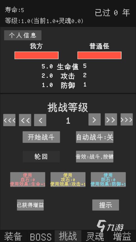 游戲的玩法是非常簡(jiǎn)單的,也是大家比較熟悉的可以放置掛機(jī)的玩法。游戲的組成內(nèi)容主要是各種文字上面會(huì)顯示著我方以及普通的怪物的生命值,攻擊力以及防御指數(shù)等參數(shù)。而且還可以自行去購(gòu)買裝備,裝備會(huì)分為不同的等級(jí)以及上面會(huì)顯示他們的攻擊力和攻擊的速度等。所以所有的信息都是非常簡(jiǎn)單直接的彰顯出來(lái)。