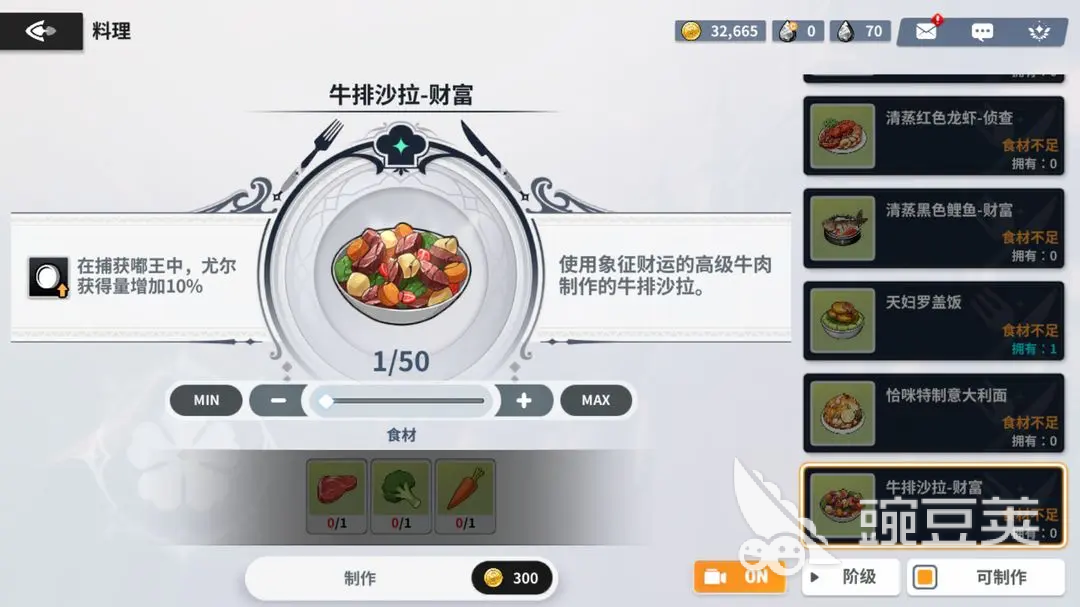 由于游戲中當(dāng)前帶有著不同效果的料理非常的多,小編這里給大家推薦兩個效果非常棒的料理,分別事牛排系列的料理和意大利面系列的料理,牛排系列的料理主要效果事能夠讓玩家在去捕獲嘟王的時候增加不多的尤爾數(shù)量,增加量為10%,意大利面系列料理的效果著事能夠提高魔導(dǎo)士在戰(zhàn)斗時的暴擊率和暴擊傷害。