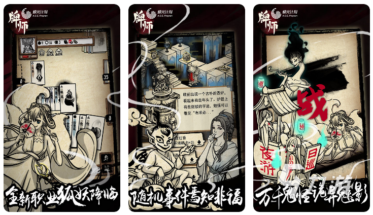 將中國(guó)風(fēng)的水墨畫風(fēng)格和肉鴿玩法相結(jié)合起來,在背景上選擇了很少有人提及的地府探險(xiǎn)模式。包括在職業(yè)的選擇上也很另類,設(shè)置有太極、道士、和尚和劍客等,通過不同的卡牌組合來開啟隨機(jī)探險(xiǎn)。