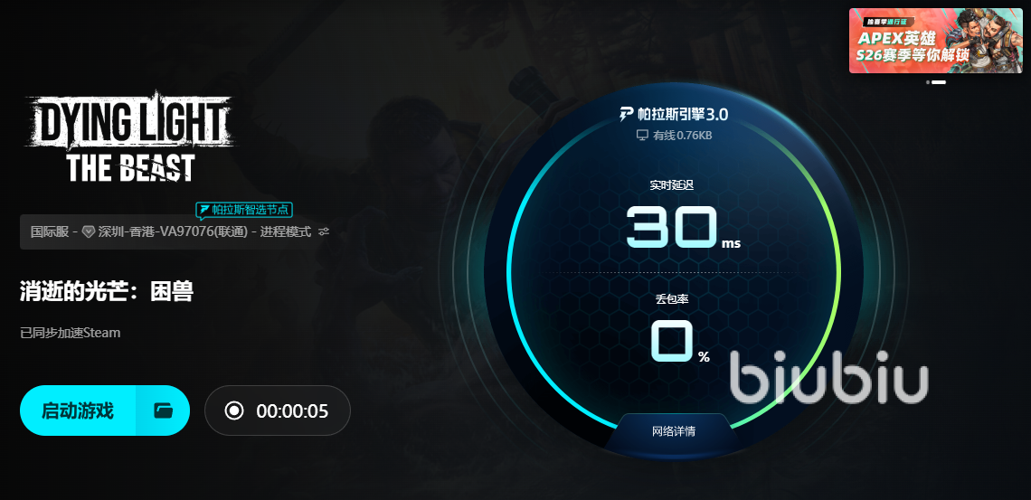 以上就是小編整理的消逝的光芒困獸下載慢怎么解決所有內(nèi)容,通過biubiu對如steam商店這樣的第三方平臺商店進行加速,可大幅提升通過商店下載游戲的速度,當然,下載加速效果的提升,同時也能給后面的游戲進行加速的,讓大家能暢玩游戲。