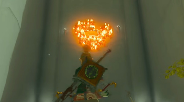 打開寶箱之后,里面會有一個火焰果,繼續(xù)前進,玩家們可以將火焰果套在箭頭上面點燃下圖所示的裝飾物。