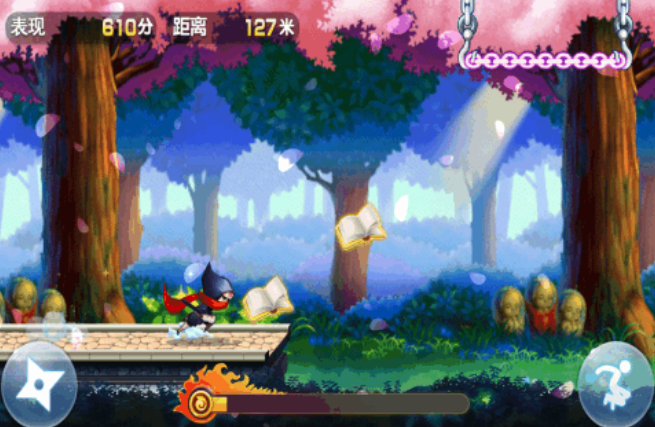 忍者跑酷主打的是橫版跑酷玩法,進(jìn)入游戲之后,玩家將會(huì)化身成為忍者,將會(huì)在一個(gè)橫屏叢林場景中不斷前進(jìn),在前進(jìn)的過程中會(huì)有大量斷裂的道路,需要通過點(diǎn)擊跳躍的方式,讓忍者可以躲避障礙,在這個(gè)過程中還會(huì)遇到大量的對(duì)手,玩家需要操控忍者發(fā)射飛鏢,擊敗這些對(duì)手之后才能繼續(xù)前進(jìn),整體的玩法比較簡單,喜歡跑酷的玩家可以嘗試一下游戲。