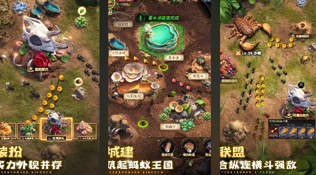 玩小小蟻國就是當(dāng)蟻后管著自己的螞蟻窩,剛開局先建蟻室,蟻后室負責(zé)產(chǎn)卵,孵化室孵新螞蟻,食物儲存室存采集來的糧食,兵蟻訓(xùn)練室練打架的螞蟻,每種蟻室都得升級,不然不夠用,資源特別重要,得派工蟻出去采,有時候還能去搶其他玩家的資源,不過得先把兵蟻練強了,不然打不過還得吃虧。