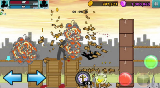 精美的游戲畫面還以橫版的形式展現(xiàn),此游戲提供的要求和規(guī)則特別簡單,玩家只要通過操控其中的火柴人,通過跳躍以及攻擊的方式和敵人進(jìn)行瘋狂的戰(zhàn)斗,還要及時(shí)躲避敵人的子彈。游戲的操作方式獨(dú)特,采用的是虛擬搖桿的控制方向,左邊可以控制火柴人行走的方向,而右邊就可以讓火柴人角色釋放出跳躍等多種技能,將敵人消滅之后就可獲得很多金幣,以此購買炫酷的武器。