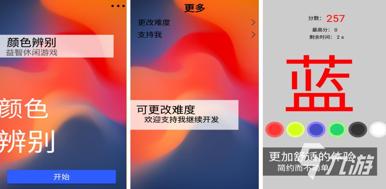 這里面不僅帶給你快樂,還能提升你對顏色的敏感度和識別能力。每個關卡都充滿了趣味性的設計,讓你歡樂玩耍的同時不斷增強你的觀察力和反應能力。游戲畫面簡潔明亮,通過以不同顏色展示的文字,比如用藍色顯示“紅色”這個詞,來考驗你選擇正確答案的能力。在限定時間內(nèi),憑借顏色而非文字意義做出判斷,鍛煉你的反應速度,同時也挑戰(zhàn)你的大腦和視覺能力,讓你樂在其中。
