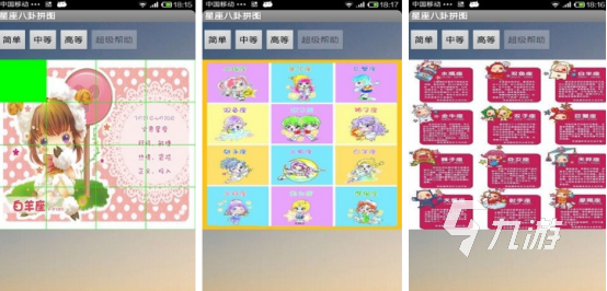 不管是想要占卜還是了解星座八卦的內(nèi)容,都可通過這款拼圖游戲做到,因為它相對于普通的拼圖游戲來說,擁有更多的玩法,還能借助星座這方面的話題,讓玩家了解與八卦星座有關的各種常識。最開始的時候可選擇簡單一點的拼圖,慢慢的可選擇中等或者是高等,會對不同星座的性格以及運勢進行相應的顯示。