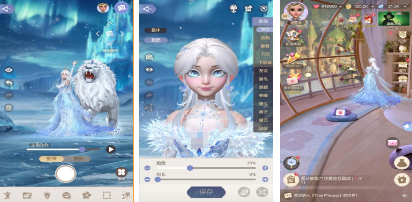 時光公主主打探險換裝玩法,游戲里玩家借助書本穿越到了一個奇幻的世界,在這里會有很多不同的國度,每個玩家都可以進入到這些國度里,開啟自由的探險,為了能有更真實的代入感,可以根據(jù)這個國度的風(fēng)格選擇相應(yīng)的服裝,人物的五官也能調(diào)整,如果不喜歡這些服裝,還可以在游戲里私人定制,每個人都能來游戲里展現(xiàn)自己的創(chuàng)意。