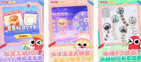 貪吃蛇的卡通形象非常吸引兒童玩家,并且只用改變他的方向就可以吃到更多的小圓點(diǎn)。蛇皮工坊101玩法趣味多多,玩家可以選擇不同顏色的皮膚的貪吃蛇。在聯(lián)機(jī)模式中,玩家可以和小伙伴一起進(jìn)入貪吃蛇團(tuán)戰(zhàn)模式。其他一些活動(dòng)上,玩家還可以在海洋凍凍大轉(zhuǎn)盤中獲得更多的人見人愛的道具。
