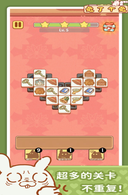 這款游戲?yàn)榇蠹仪擅畈贾昧嗽S多可愛(ài)的小兔子形象,讓大家一眼望過(guò)去,心靈就被治愈。游戲?qū)⑹卟怂腿剡M(jìn)行融合,大家只需要拖拽水果方塊進(jìn)入卡槽,使得3個(gè)甚至3個(gè)以上的相同水果蔬菜粘連在一起就能達(dá)到消除目的,這對(duì)于大家來(lái)說(shuō)并不困難,而且還能磨礪大家的細(xì)心耐心。游戲的關(guān)卡多到你無(wú)法想象,所以大家可以盡情暢玩。