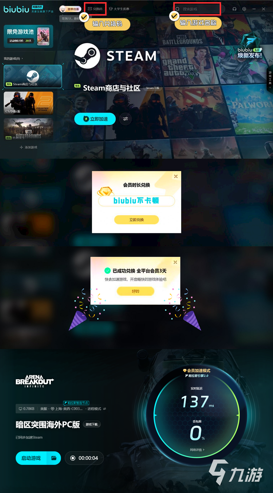 在介紹這玩法前有一件事需要做,那就是給大家推薦一款加速器,畢竟這一作嚴(yán)格意義上來(lái)說(shuō)是一款端游,因此是需要加速器才能玩的,如果大家還在糾結(jié)選哪個(gè)好的話,biubiu就是一個(gè)非常棒的選擇,這是一款加速效果快且穩(wěn)定的加速器,同時(shí)當(dāng)前階段也是福利活動(dòng)多多,新用戶下載即可免費(fèi)試用24小時(shí),再搭配【biubiu不卡頓】這個(gè)福利碼,還能額外兌換三天的使用時(shí)長(zhǎng),這個(gè)兌換碼新老用戶都能用哦。
