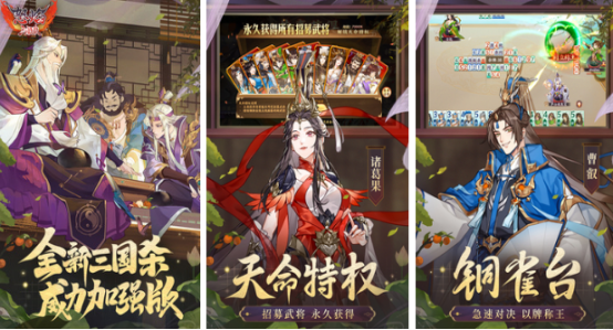 非常有趣的三國類手游以三國時代為背景的卡牌作品,我們可以自由操控三國時期比較著名的各種特色武將,最終打造出具有特色的游戲組合以及相關(guān)陣容。從多樣化特色玩法與模式滿足不同玩家的種種需求與喜好,當(dāng)前推送出雙降機(jī)制,所有玩家都能夠自由操控兩個不同的武將攻守兼?zhèn)?,這樣也能全面增加游戲的策略性。