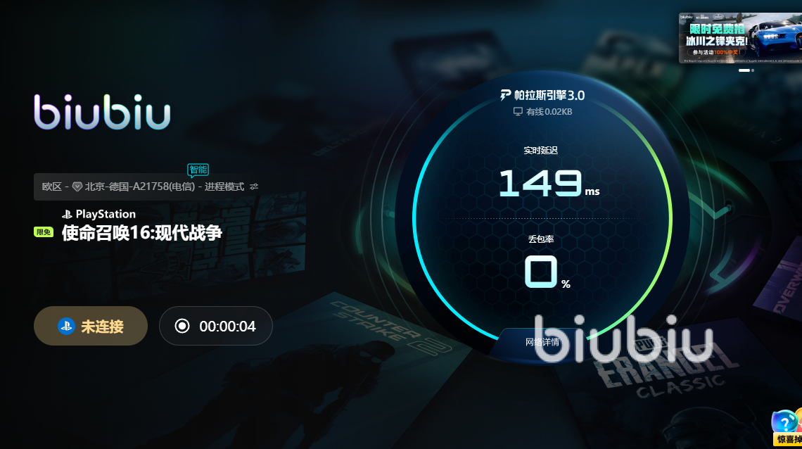 當(dāng)然,biubiu同樣可以改善本地網(wǎng)絡(luò),使用了最新的帕拉斯引擎3.0技術(shù),搭載了智能系統(tǒng),可在發(fā)生問題時,為會員啟用數(shù)據(jù)補(bǔ)發(fā)功能,并在游戲全程中通過智能監(jiān)測和匹配功能,幫助維持整個網(wǎng)絡(luò)的穩(wěn)定性,避免發(fā)生因數(shù)據(jù)丟包引起的閃退。