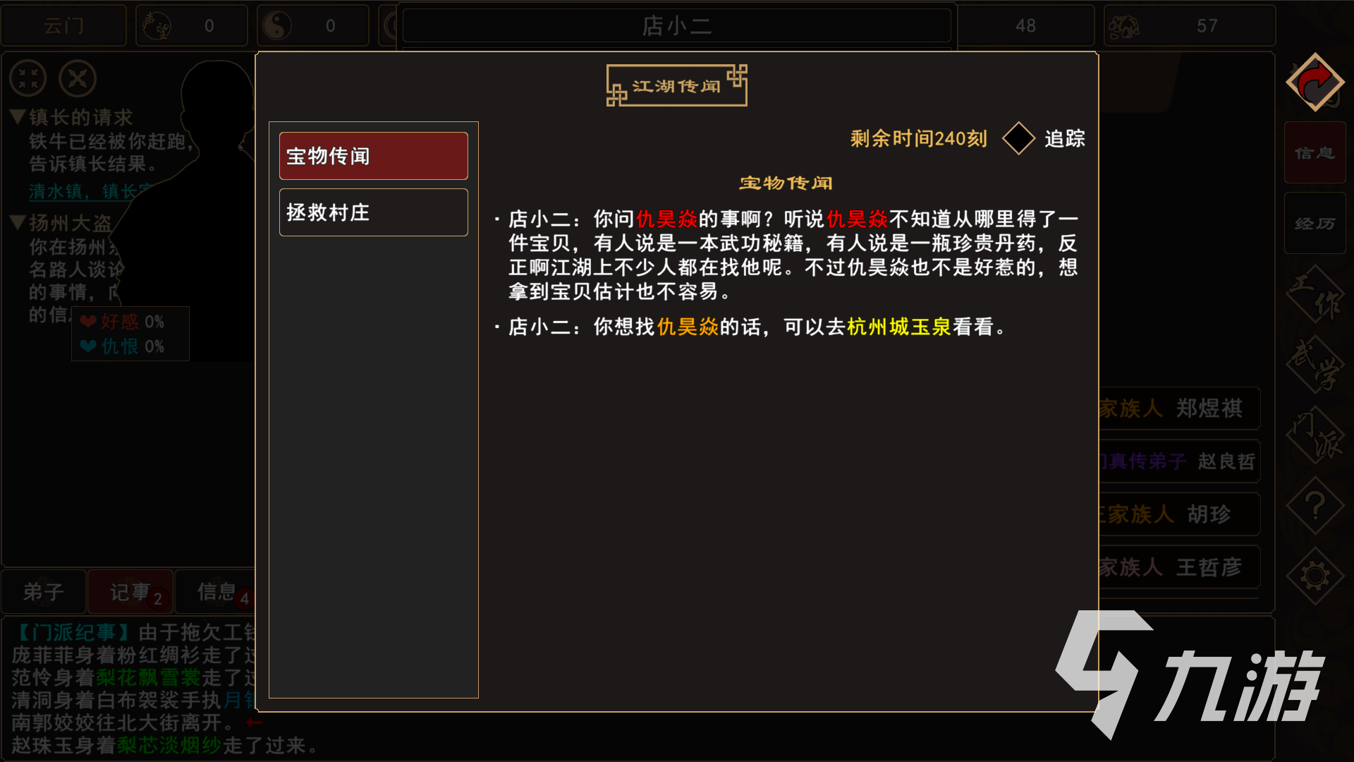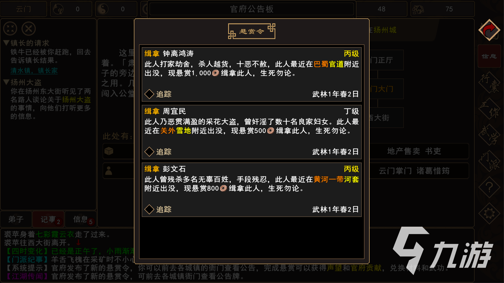 游戲的大世界存在時(shí)間流逝的設(shè)定,隨著時(shí)間的推移,江湖上會(huì)發(fā)生一些意想不到的情況,這些都會(huì)為我們帶來(lái)一些隨機(jī)任務(wù)。這些任務(wù)可能會(huì)非常簡(jiǎn)單,僅僅是江湖傳聞,也有可能比較困難,比如官府的懸賞等。當(dāng)然豐厚的獎(jiǎng)勵(lì)是不可缺少的。