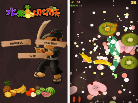玩家在屏幕上,不斷地對著有水果的地方進行滑動以后,就能感受利用刀刃切水果,所帶來的刺激體驗。也并沒有非常復雜的操作方法,反而能化身為游戲當中的忍者,拿著各種炫酷的刀具,對著滿屏的水果進行切除。在各種顏色水果濺出的美味果汁時,也能感受滿屏畫面所帶來的獨特之處,如果能獲得連擊的機會,分數(shù)也會有所增加。